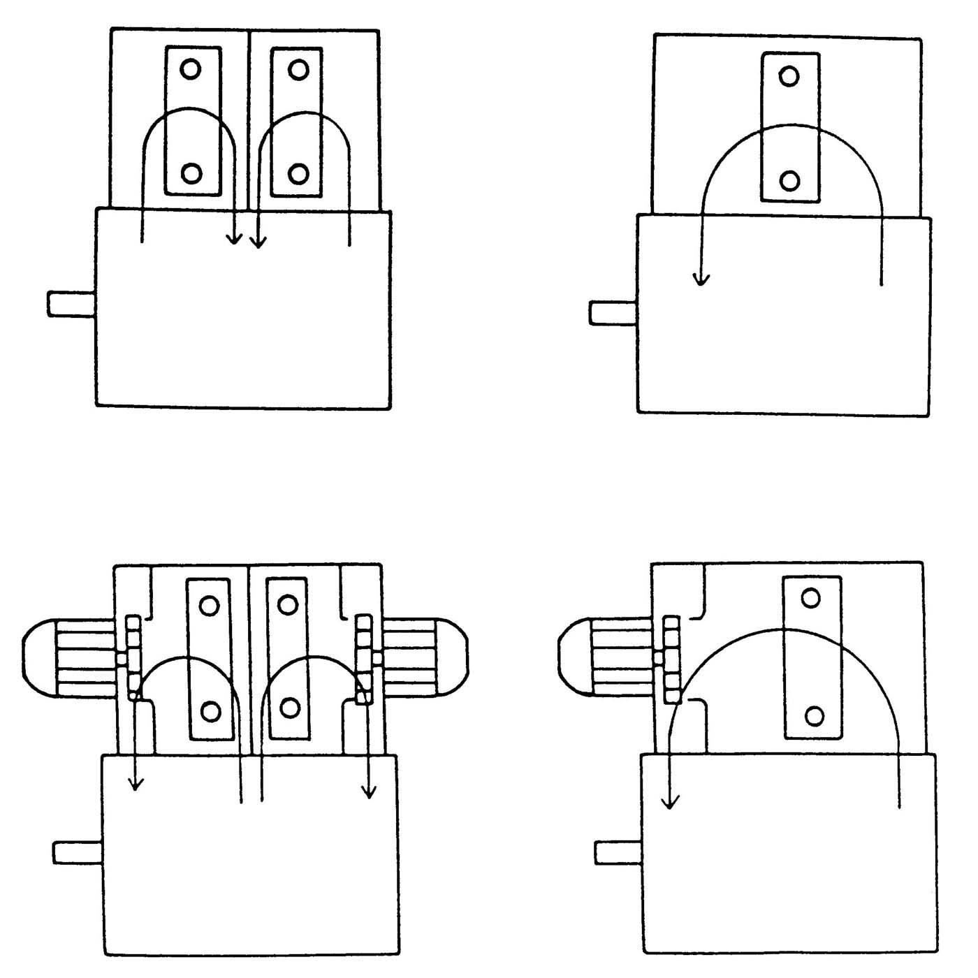 根據(jù)所配套的電動(dòng)機(jī),一般情況背包有以下四種結(jié)構(gòu)型式(見圖)
